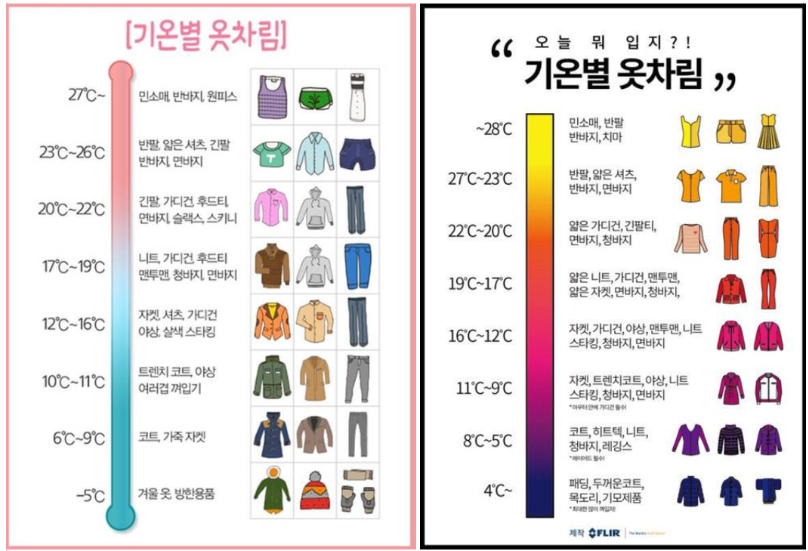 | 계절 | 기온(℃) | 특징 | 추천 옷차림 |