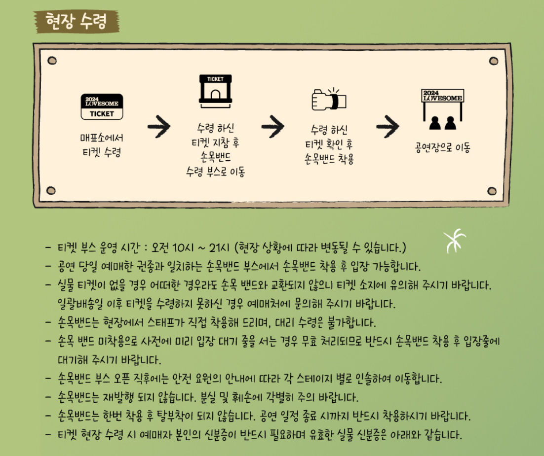 온라인으로 티켓 예매 후 현장에서의 수령 방법도 미리 확인하고 가시기 바랍니다.